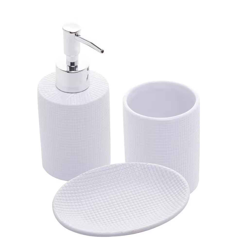 Conjunto para Banheiro Lille 3 Peças (Porta-Sabonete Líquido, Saboneteira e Porta-Escovas) Cerâmica Lyor Branco