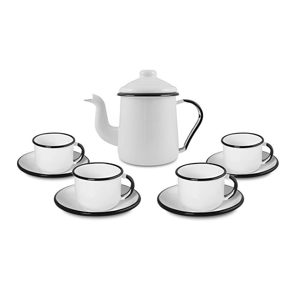 Conjunto Para Café Esmaltado 9 Peças Branco EwelConjunto para Café Esmaltado 9 Peças Branco Ewel Para servir e decorar, além da beleza, os esmaltados da Ewel possuem vários benefícios. O esmaltado é um produto artesanal feito em aço especial, revestido interna e externamente por esmalte vítreo, adquirindo uma superfície lisa com cor e brilho. Possui diversos benefícios se tratando de cozimento e conservação dos alimentos. O material é atóxico, ou seja, não há contaminação dos alimentos por resíduos metálicos; máxima inibição a proliferação de germes e bactérias no preparo dos alimentos, por apresentar baixíssima porosidade preserva o sabor dos alimentos; superfície lisa que permite uma limpeza muito mais prática. Além disso o produto pode ser levado à máquina de lavar louças. Informamos que pequenos pontos nas peças não são considerados defeitos, e sim características do processo produtivo. Conjunto para Café Esmaltado 9 Peças Branco Ewel - Especificações Técnicas Material: Aço especial Revestimento: Esmalte vítreo Conjunto para Café Esmaltado 9 Peças Branco Ewel - Conteúdo do Jogo 01 Cafeteira Tradicional - 1,1 L 04 Xícaras - 160 ml 04 Pires - 14,5 cm Conjunto para Café Esmaltado 9 Peças Branco Ewel - Na sua casa!