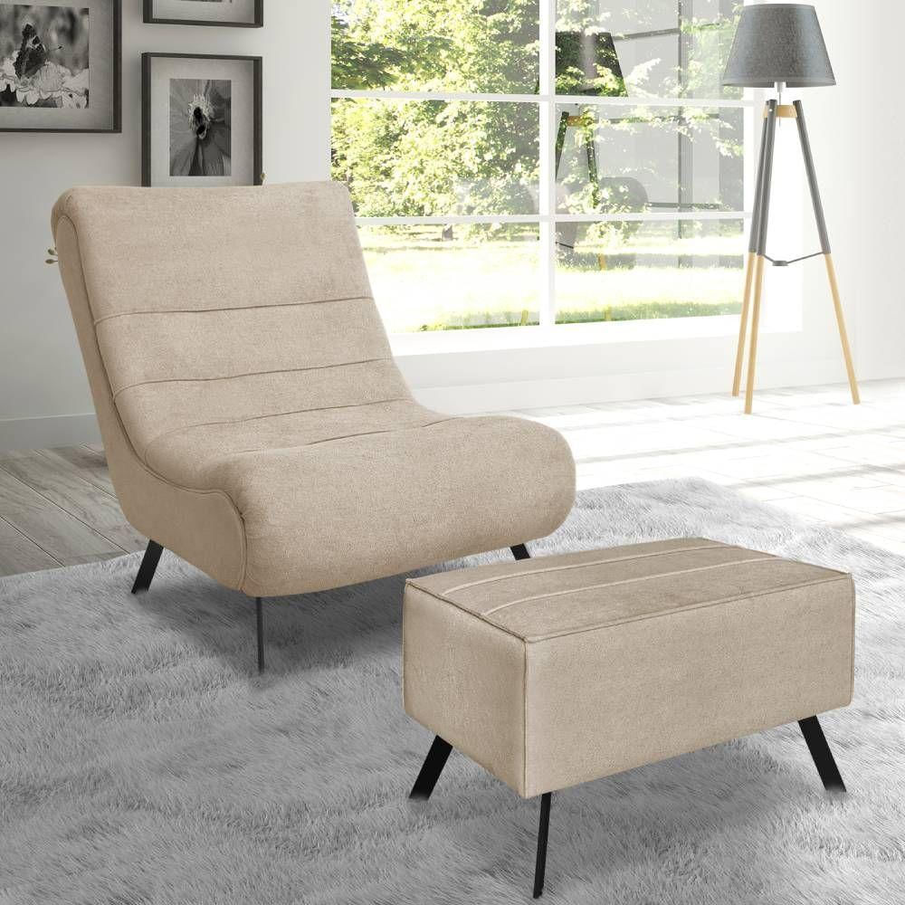 Conjunto Poltrona + Puff Com Pés De Ferro Em Tecido Bouclé Vancouver – Lucadi Bege