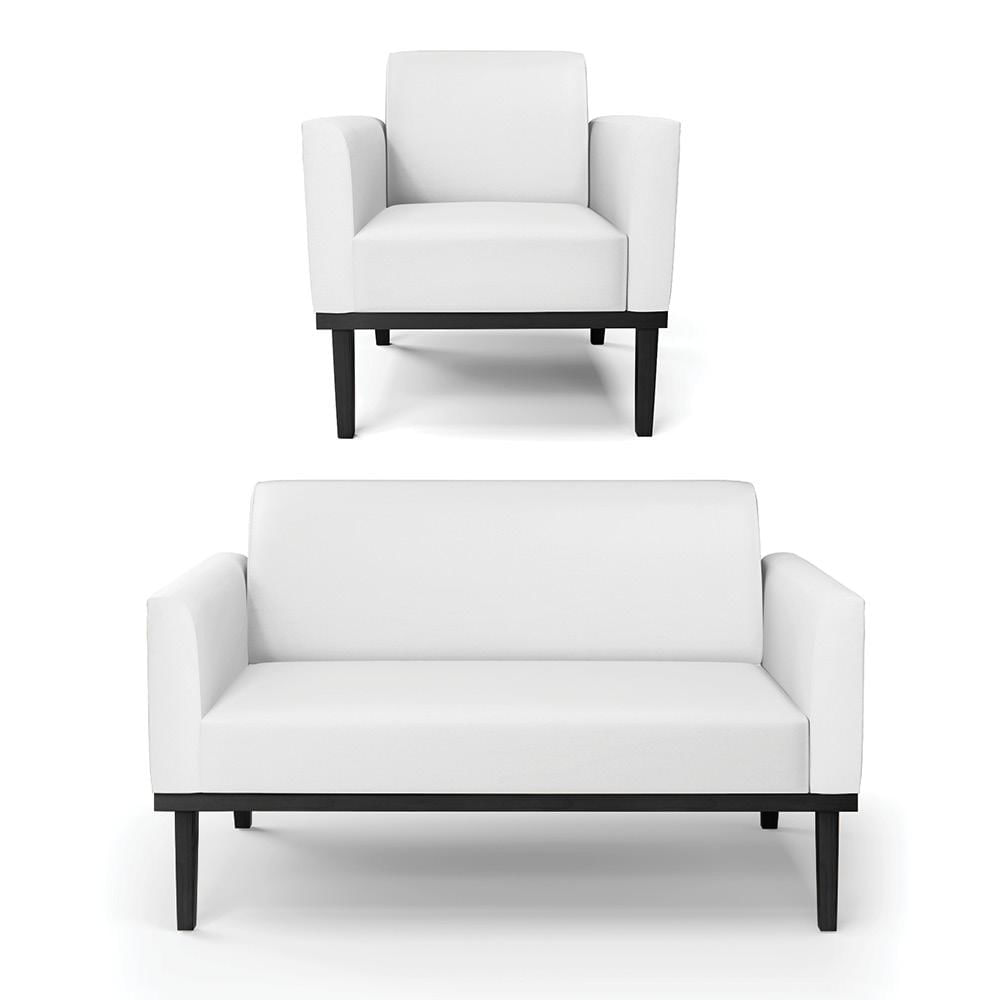 Conjunto Poltrona e Namoradeira Decorativa Isabella Pés Fixo em Madeira Preto PU Branco G19 - Gran Belo