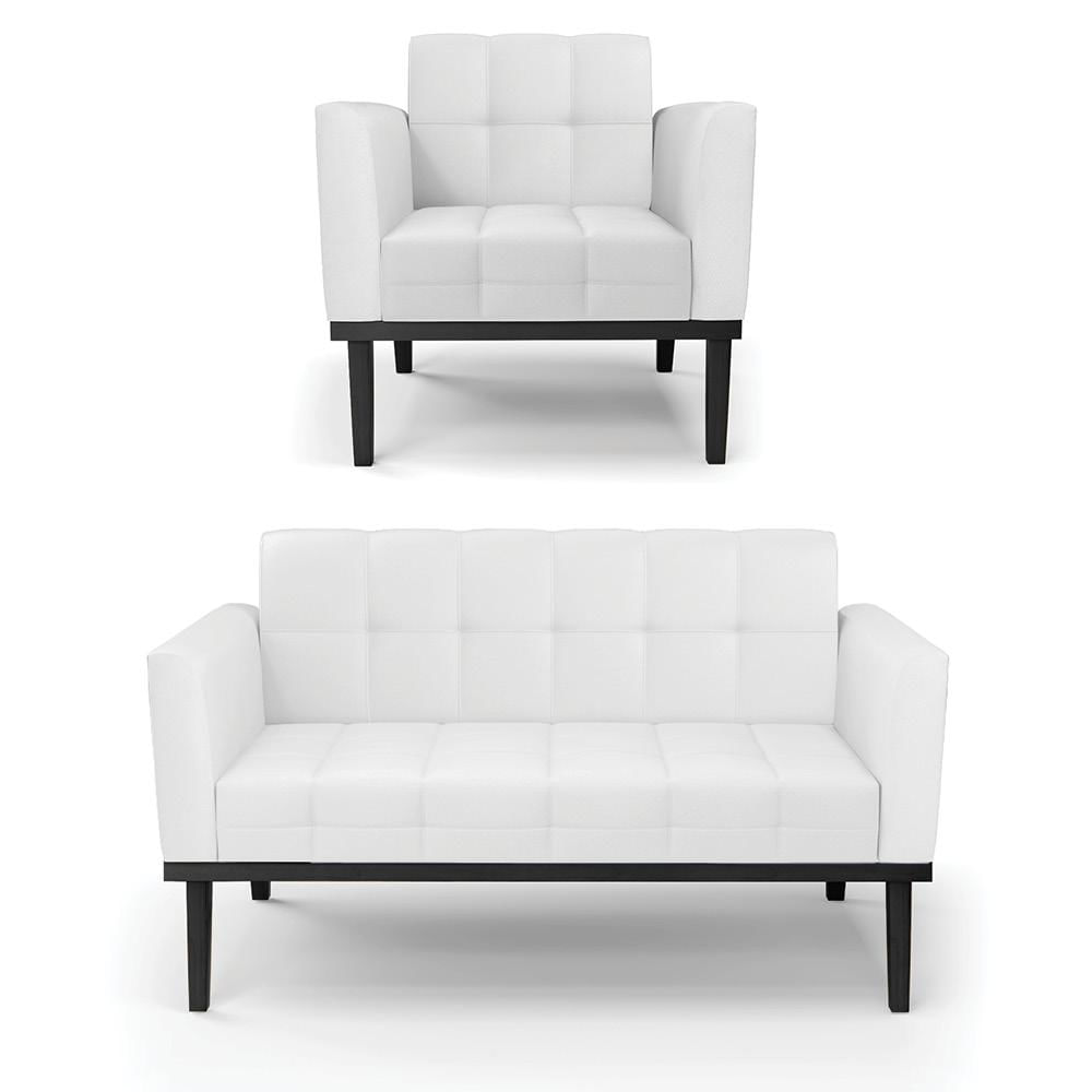Conjunto Poltrona e Namoradeira Decorativa Karen Pés Fixo em Madeira Preto PU Branco G19 - Gran Belo