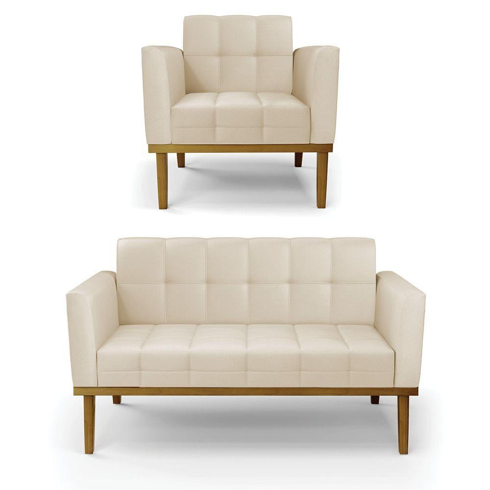 Conjunto Poltrona E Namoradeira Decorativas Karen Pés Fixo Em Madeira Castanho Pu Bege G19 - Gran Belo