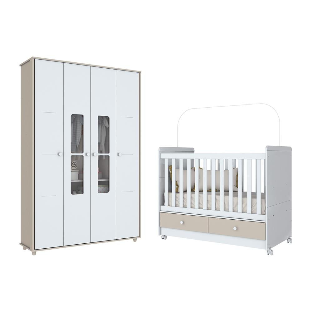 Conjunto Quarto Infantil Henn Aquarela Guarda-Roupa + Berço - 2 Peças Cristal e Branco