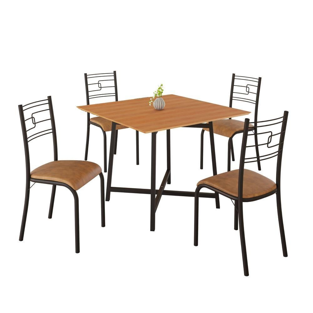 Conjunto Sala De Jantar Ella 90x90cm 4 Cadeiras Preto/jambo