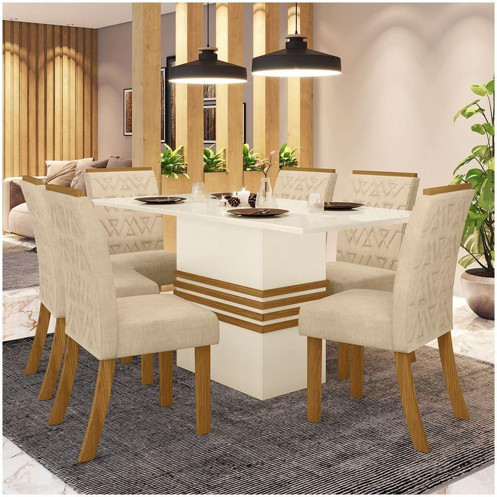 Conjunto Sala De Jantar Mesa 160cm Tampo Mdf 6 Cadeiras Melinda Casa 812 Nature Com Off White E Linho