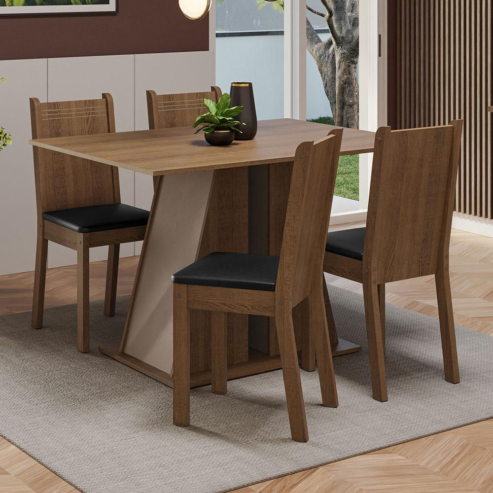 Conjunto Sala de Jantar Mesa Tampo de Madeira 4 Cadeiras Rustic/Crema/Preto Marilyn Madesa Rustic/Crema/Sintético Preto