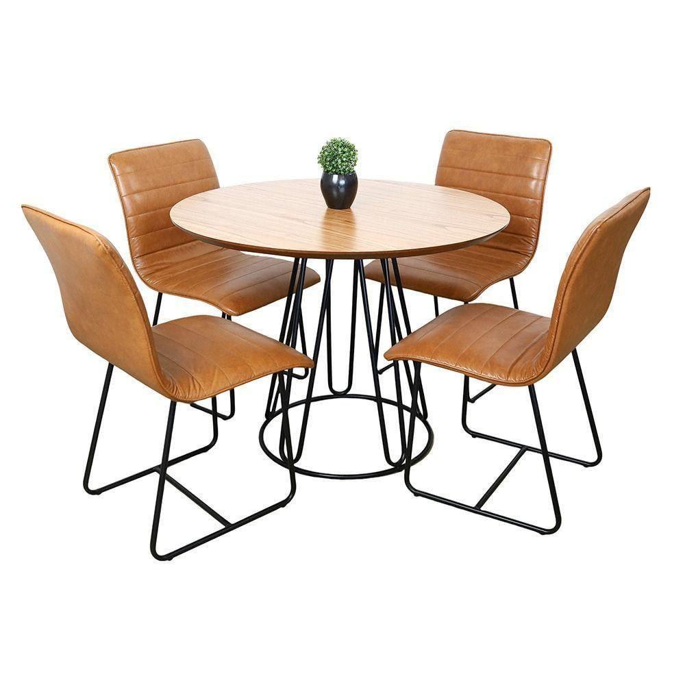Conjunto Sala De Jantar Rubi Cinamomo Com 4 Cadeiras Cristal Couro Caramelo Base Preto