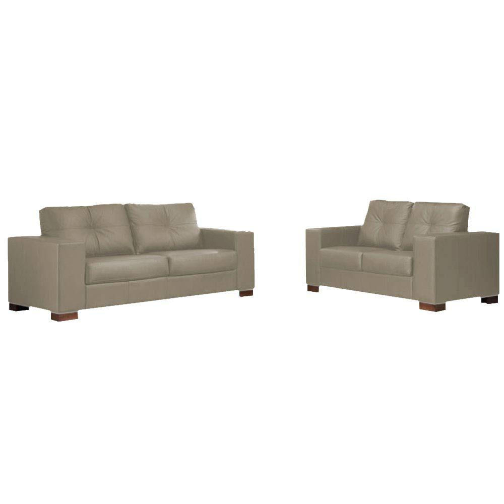 Conjunto Sofá 3 e 2 Lugares Sala de Estar kenny Couro Avelã - Gran Belo