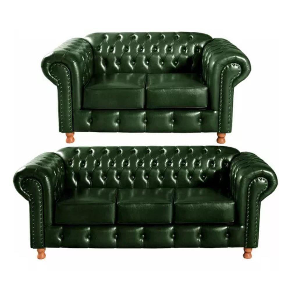 Conjunto Sofás 2 E 3 Lugares Chesterfield Luís Xv Vintage Retrô Capitonê Couro Verde
