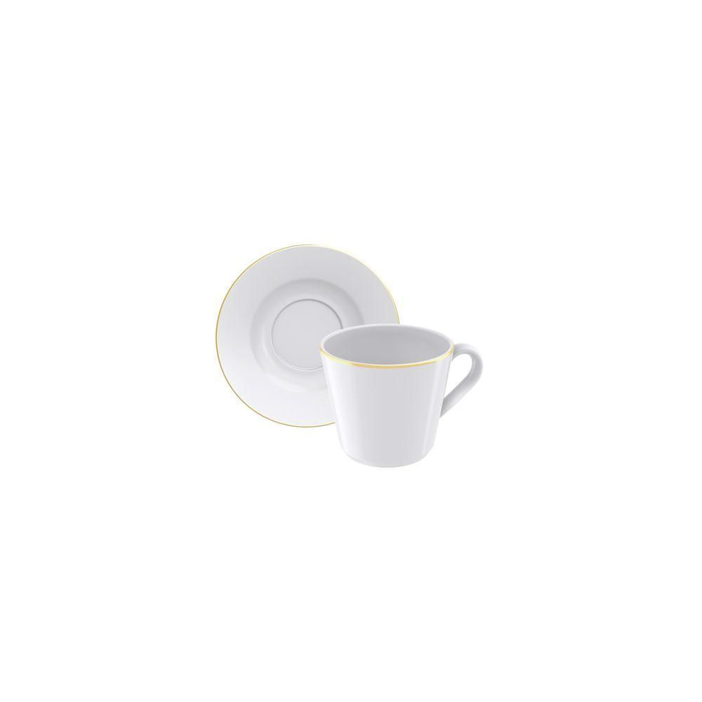 Conjunto Xícara E Pires Chá Filetado Tramontina Elisa Em Porcelana Com Borda Dourada 185 Ml 2 Peças