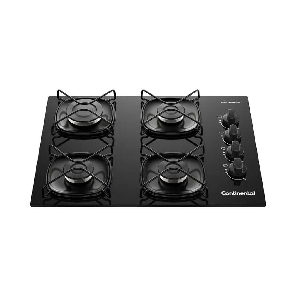 Cooktop 4 Bocas A Gás Continental Mesa Vidro Preto Com Acendimento Automático KC4GR