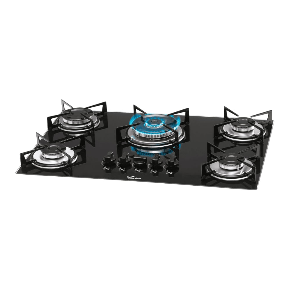 COOKTOP FISCHER A GÁS 5 BOCAS TRIPLA CHAMA MESA DE VIDRO PRETO BIVOLT 1743-5733