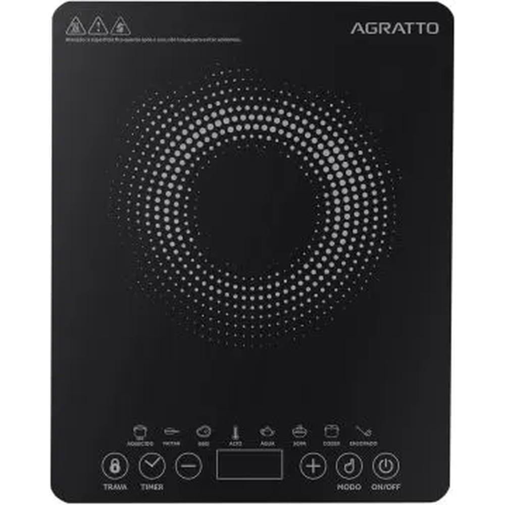 Cooktop Indução 2000W Vitrocerâmico 1 Boca Preto ACKI01I-02 Agratto 220V