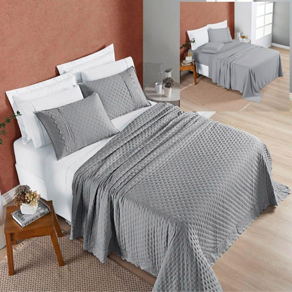 Coordenado Cobre Leito E Lençol Divino King 7 Pçs - Grafite - 100% Poliéster