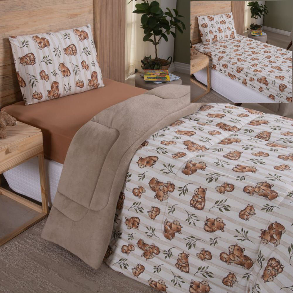 Coordenado Edredom Coberdrom e Lençol em Malha Capivara 3 Peças