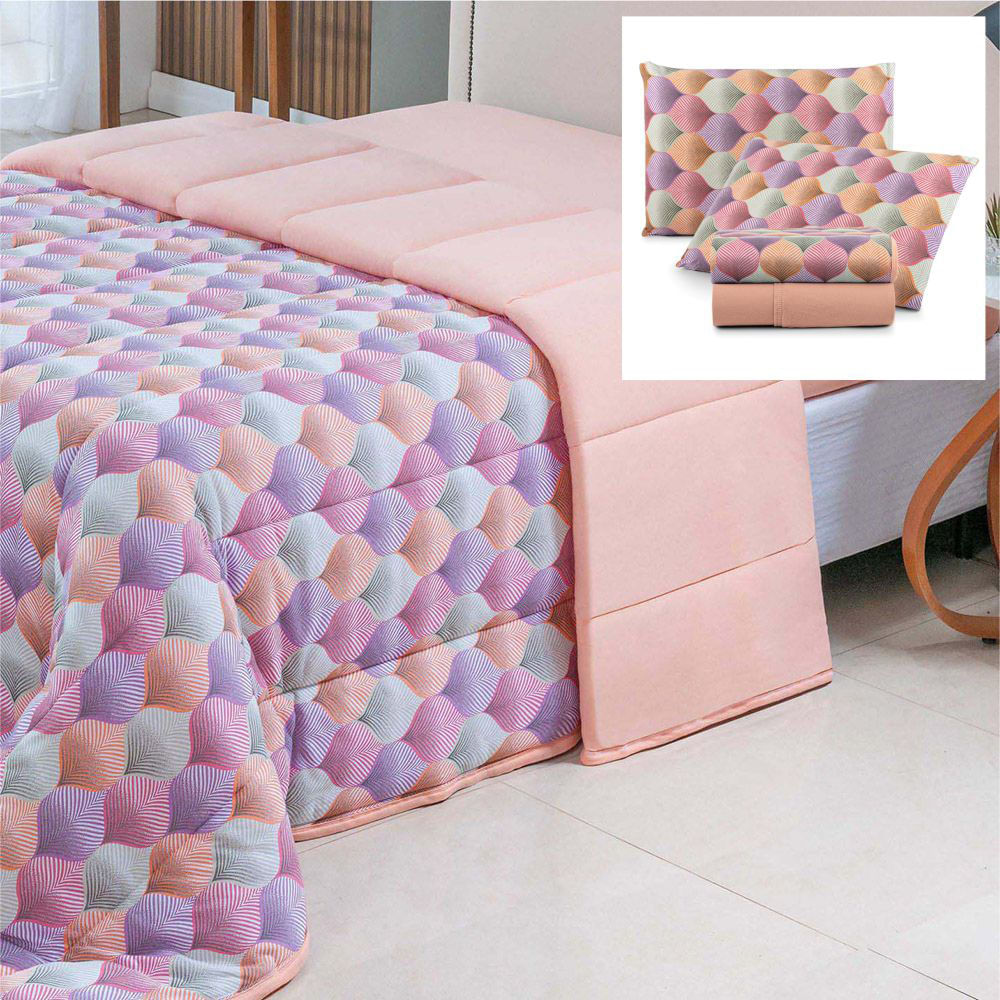 Coordenado Edredom e Lençol Queen Sonho Bom em Malha 5 Peças - Salmão - 100% Algodão