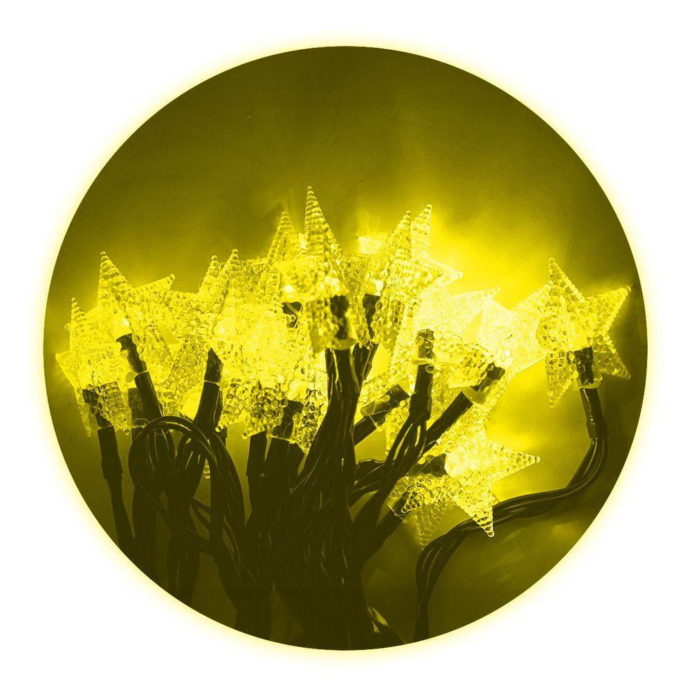 Cordão De Lampadas Led Pisca Formato Estrela 5 Metros 20l Carregamento Solar Natal Amarelo