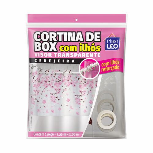 Cortina para Box Plast Leo Vinil com Ilhós e Visor Retangular 1,35x2,00m Cerejeira