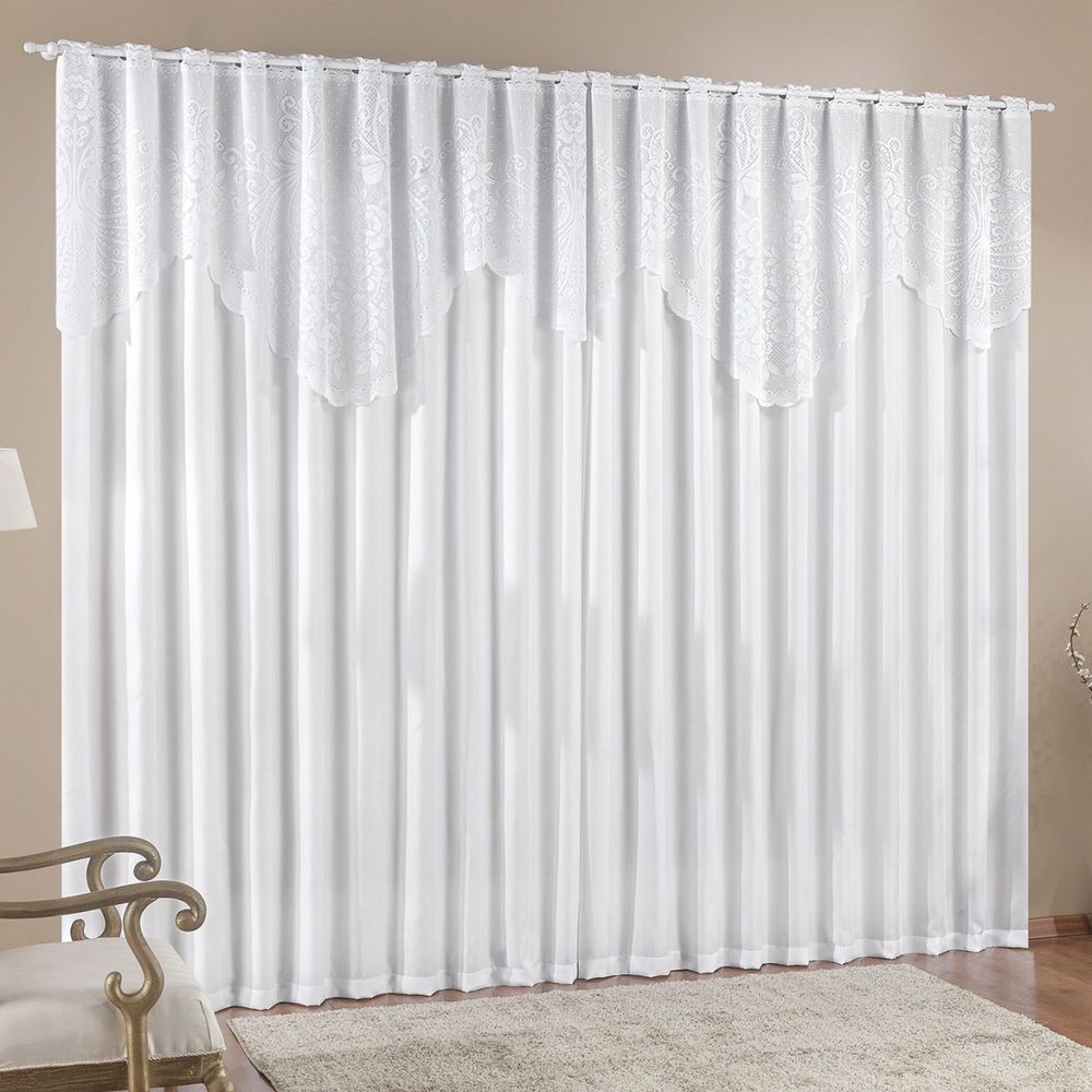 Cortina Nicole 3 Metros Branca Tecido Microfibra Com Renda Floral Sala Quarto