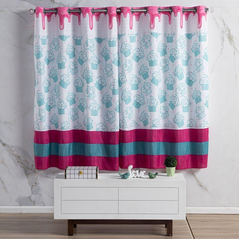Cortina 2 Metros Para Quarto Estampada Infantil Cake Donuts Pink/tiffany 2,00m X 1,50m Para Varão Simples