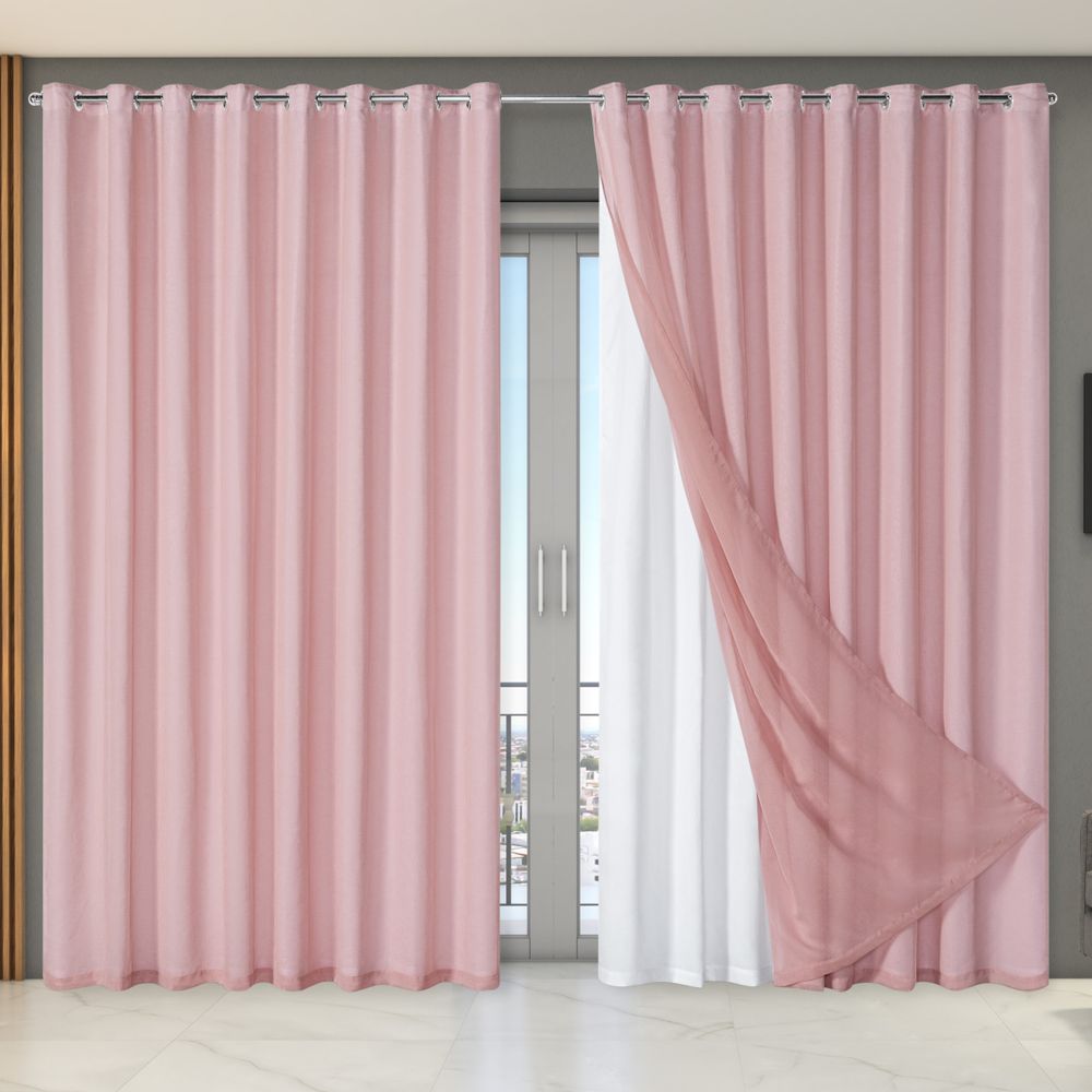 Cortina Dual Microfibra Voil Gaze Belga 5,60m x 2,70m 100% Poliéster - Rosa