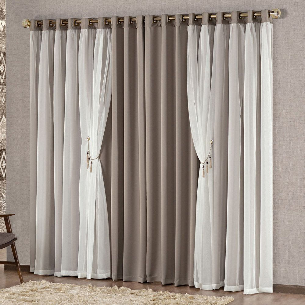 Cortina Mabelle 2,00m x 1,70m Semi Blackout Com Voal Premium Pingentes Sala Quarto - Avelã