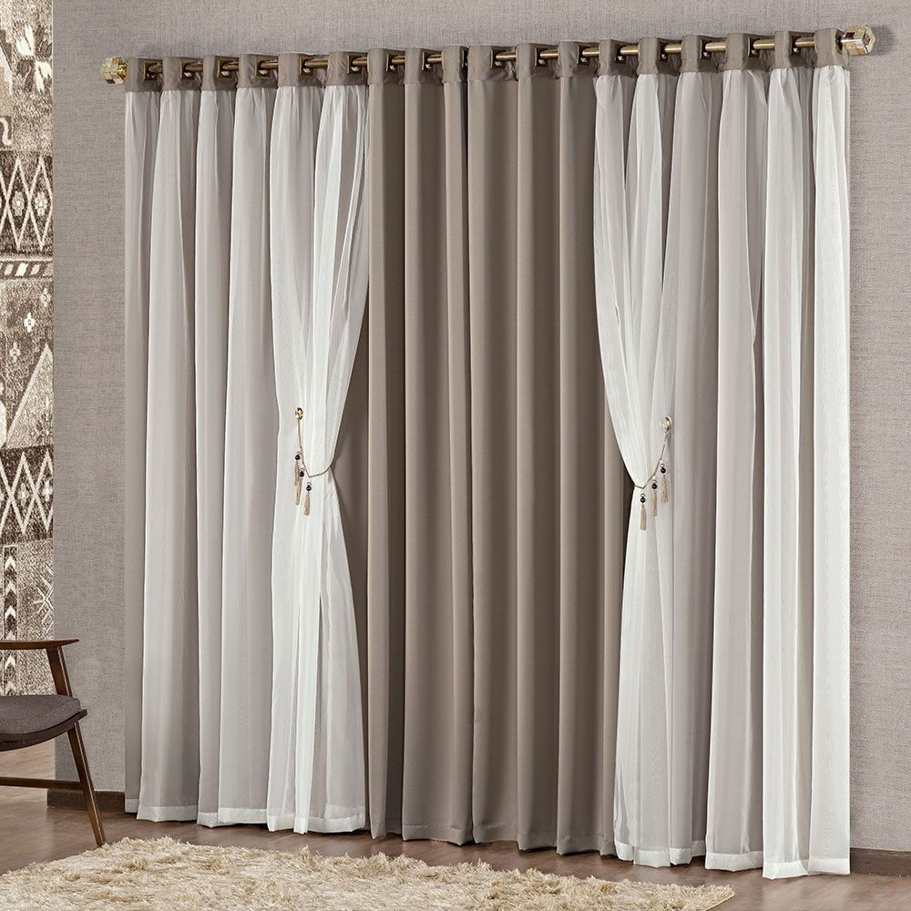 Cortina Mabelle Luxo para Varão Tecido Semi Blackout e Voal 2,00 x 1,70 Metros - Avelã