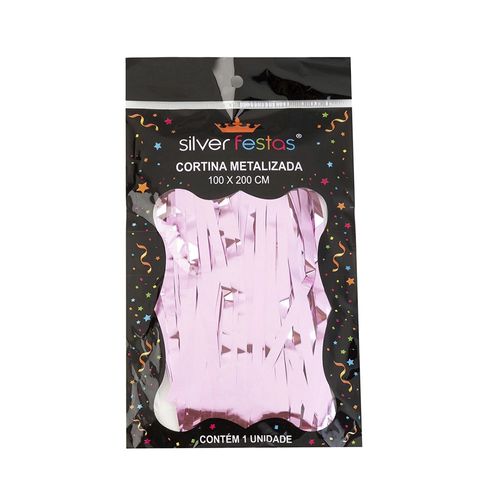 Cortina de Franja Decorativa Silver Festas Metalizada Rosa Bebê 100x200cm