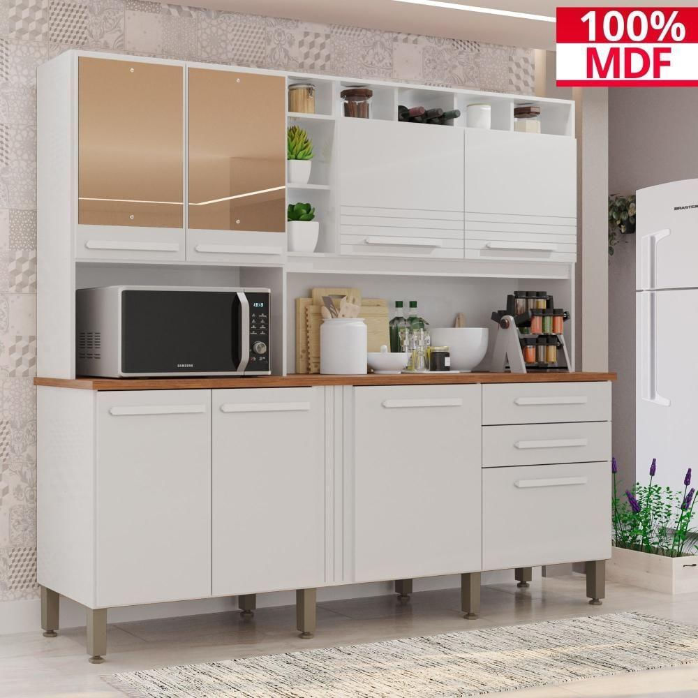 Cozinha 8 Portas 2 Gavetas Aurora Branca Com Espelho