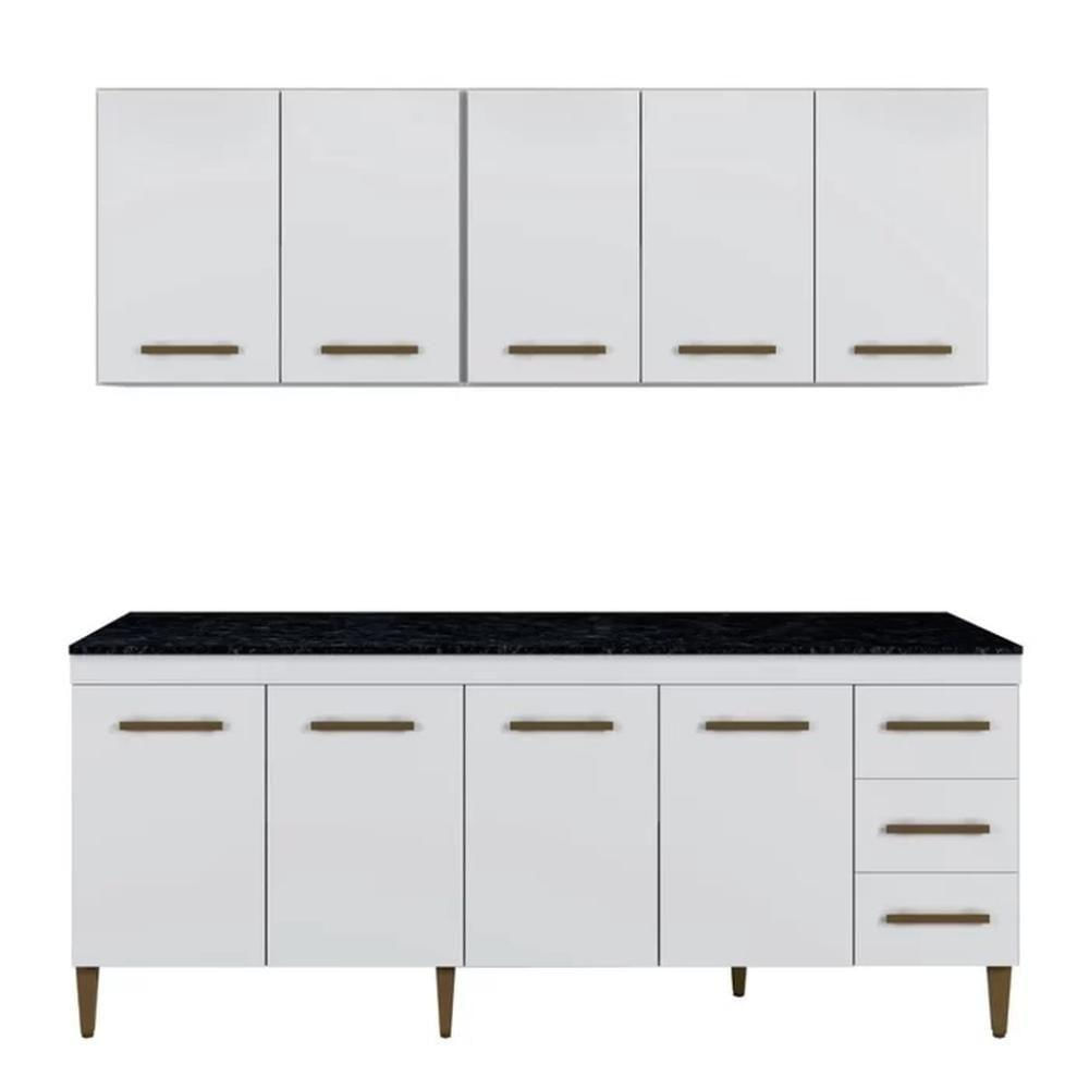 Cozinha Compacta Atenas 9 Portas 3 Gavetas Kaiki Móveis BrancoNa hora de mobiliar o seu cômodo de chef você não precisa comprometer a decoração para ter um móvel funcional e que acomode todos aqueles itens essenciais. A Cozinha Atenas não só está preparada para deixar o cômodo com um visual incrível, mas também vai ser a aliada perfeita para armazenar louças, utensílios, alimentos e eletrodomésticos de forma funcional. Já por fora, a peça tem acabamento charmoso com puxadores discretos que ajuda a trazer um toque especial ao ambiente, enquanto as cores versáteis agregam muito à estética dessa peça primorosa. Muito bom gosto para o seu lar-style!Especificações- Medidas do móvel: 211 (A) x 201 (L) x 53 (P) cm;- Medidas do Balcão: 86 (A) x 201 (L) x 53 (P) cm;- Medidas Aéreo 2 Portas: 68 (A) x 80 (L) x 30 (P) cm;- Medidas Aéreo 3 Portas: 68 cm x 120 cm x 30 (P) cm;- Peso: 105,9 kg;- Material: MDF;- Acabamento: Pintura UV;- Escala de Brilho: Semi-Brilho;- Quantidade de portas: 09;- Tipo de porta: Bater;- Quantidade de Prateleiras: 05;- Peso suportado por prateleira: 10 kg;- Quantidade de gavetas: 03;- Peso suportado por gaveta: 10 kg;- Quantidade de pés: 08;- Altura dos pés: 17 cm; - Recomendações de Uso, Manutenção e Limpeza: Evitar sua exposição em ambientes úmidos e próximos a fontes de calor. Retirar o pó com pano macio e umedecido, secando em seguida. Não fazer uso de produtos químicos ou abrasivos; Informações Importantes - A disponibilidade se refere ao prazo para o envio do produto encomendado. - A cor do produto pode variar em relação à foto devido a fatores como tratamento de imagem e calibração do monitor. - Detalhes e acabamentos podem não ser evidentes nas imagens, que são meramente ilustrativas. - Objetos que aparecem nas fotos não acompanham o produto. - A instalação deve ser realizada por um técnico de confiança do cliente, pois não nos responsabilizamos por montagens. - A transportadora não realiza s com subida de escada ou içamento de produtos; despesas desse tipo são de responsabilidade do cliente. NA