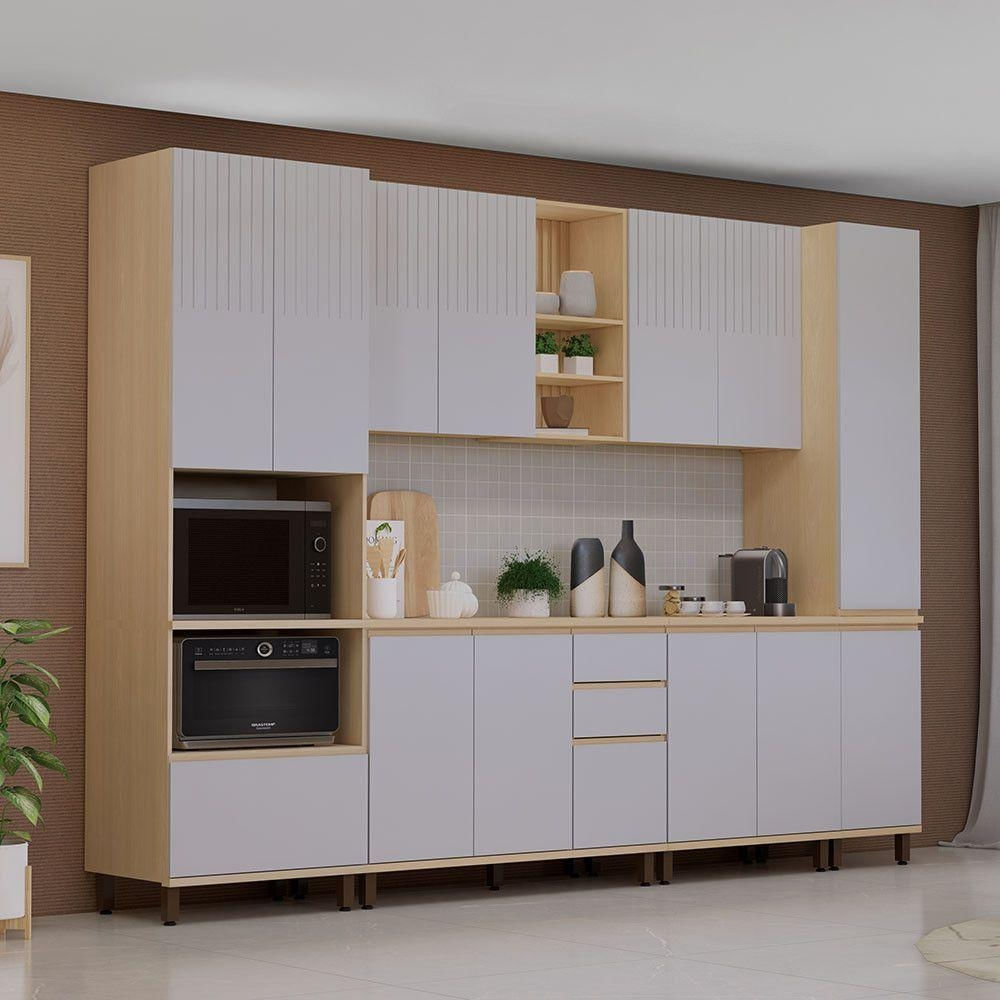 Cozinha Completa 6 Pçs Espaço Micro-ondas E Tampo 310cm Aur Carvalho-cinza Cristal