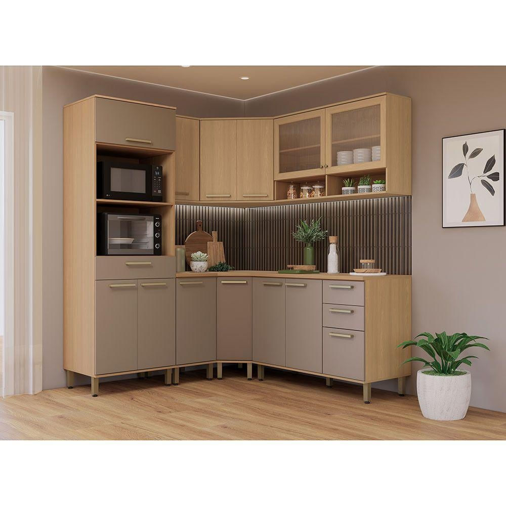 Cozinha Completa De Canto 100% Mdf 378cm Duna Luciane Móveis Freijó/cinammon