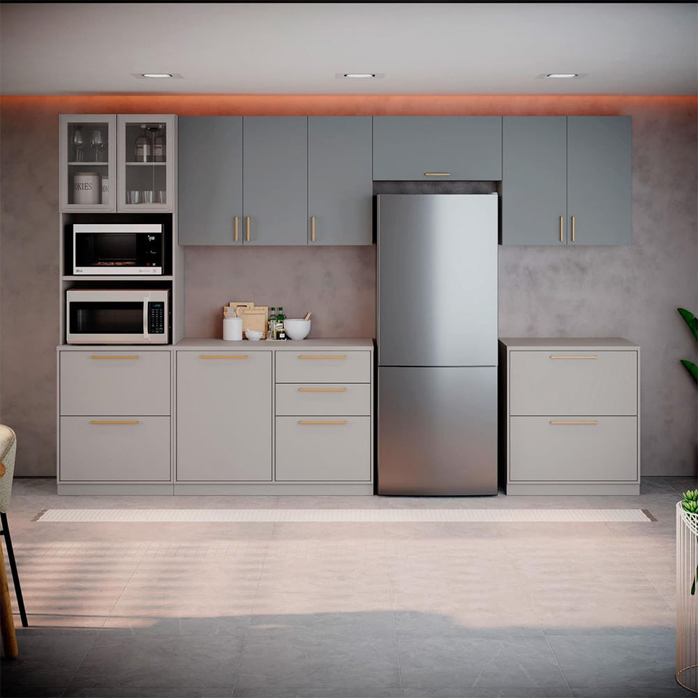 Cozinha Completa Itatiaia Essence 6 Peças Balcões Armários Paneleiro Fendi/Gris