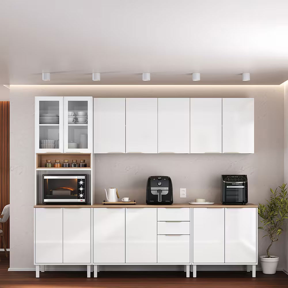 Cozinha Completa Itatiaia Renova com 14 Portas, 2 Gavetas, 7 Prateleiras, Nicho para Micro-ondas e 270cm de largura - Branco Neve n/a