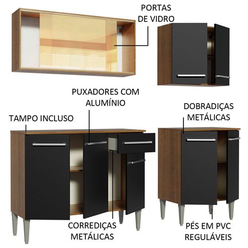 Cozinha Completa Madesa Emilly Drive com Balcão e Armário Aéreo Reflex Rustic/Preto Cor:Rustic/Preto