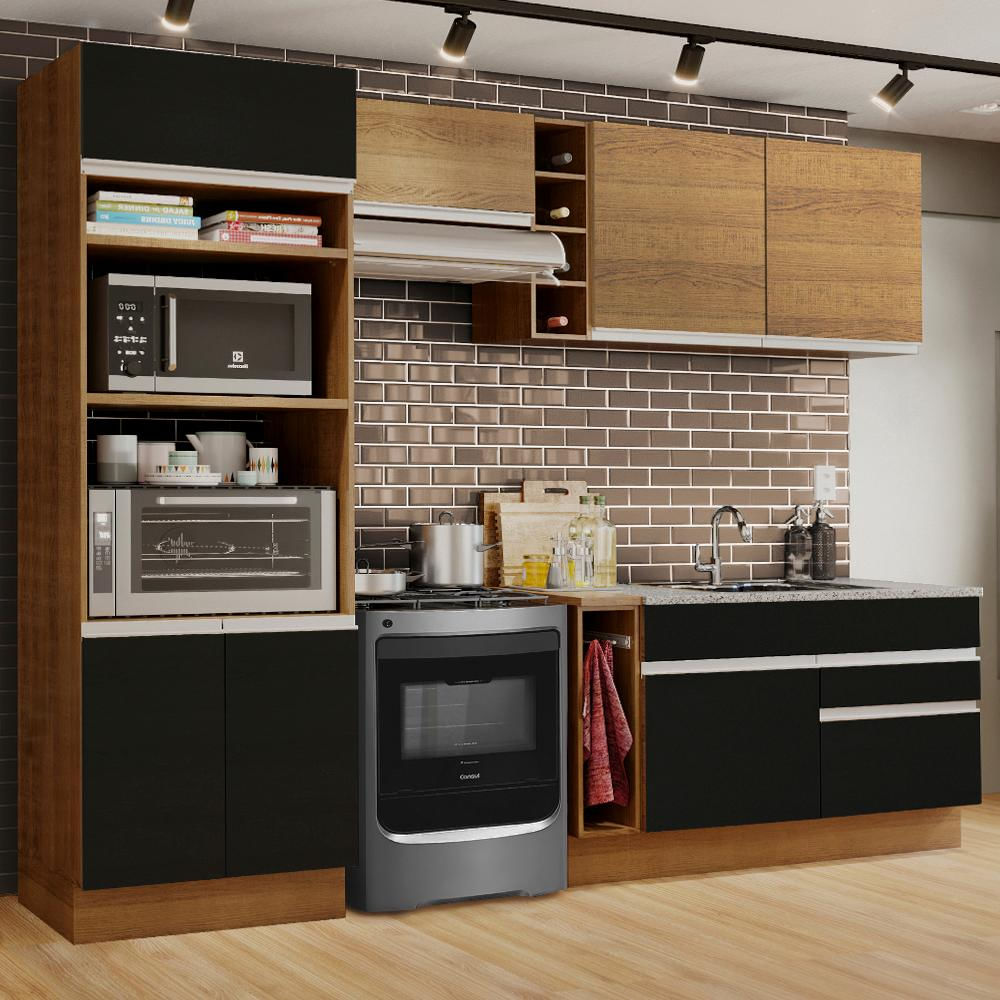 Cozinha Completa Madesa Jade com Armário e Balcão (Sem Tampo e Pia) - Rustic/Preto/Rustic Rustic/Preto/Rustic