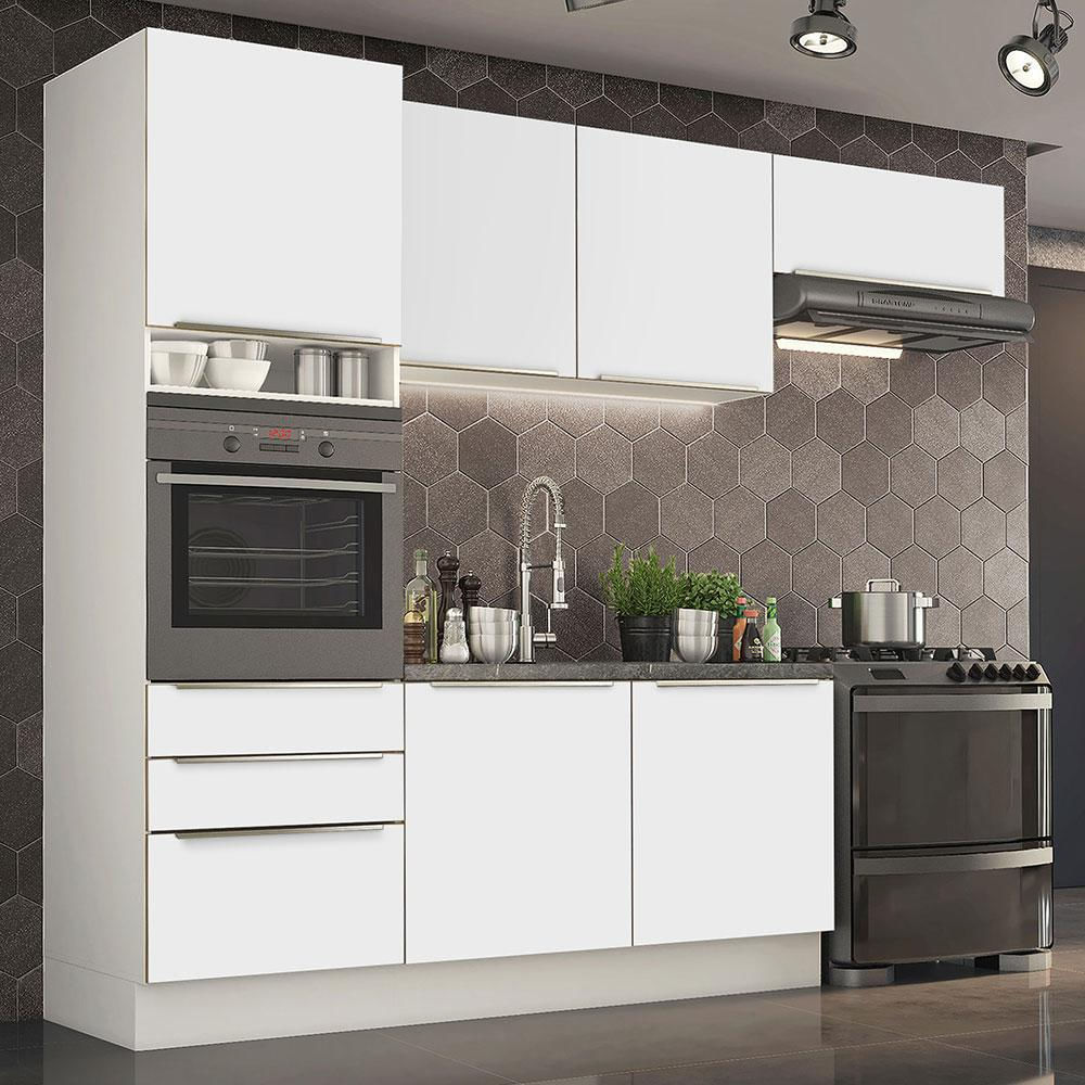Cozinha Completa Madesa Lux com Armário e Balcão 6 Portas 3 Gavetas - Branco/Branco Veludo Branco/Branco Veludo