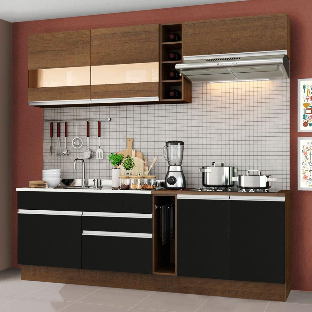 Cozinha Completa Madesa Parma com Armário e Balcão (Sem tampo e Pia) - Rustic/Preto/Rustic Rustic/Preto/Rustic