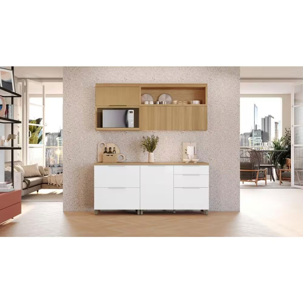 Para complementar, o Armário Aéreo para Micro-ondas Nesher Marquesa de 80cm oferece porta articulada com pistão a gás, moldura superior robusta e nicho decorativo aberto, perfeito para unir funcionalidade e estilo. Com estrutura reforçada e fita de borda em polipropileno, o móvel é resistente à umidade e fácil de montar.