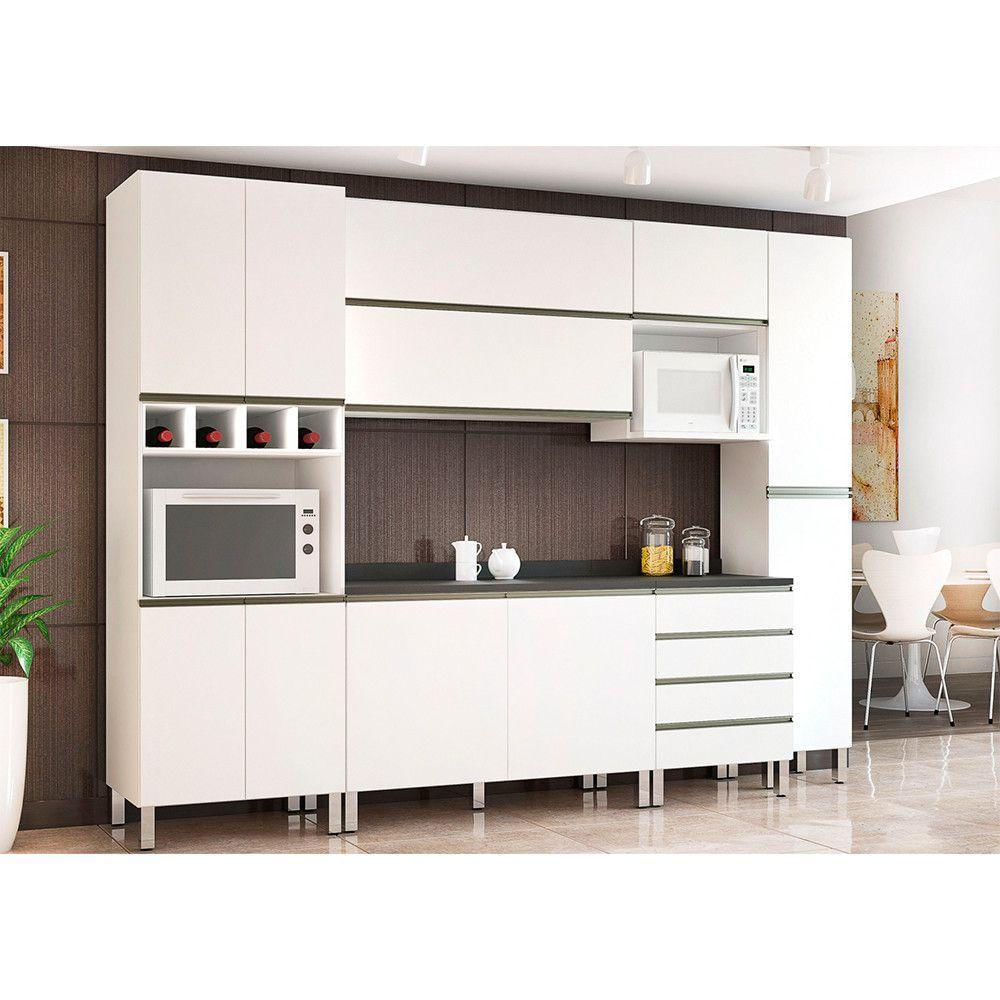 Cozinha Modulada Compacta 7 Peças Com Tampo Branco Pérola Luciane Móveis Branco Polar