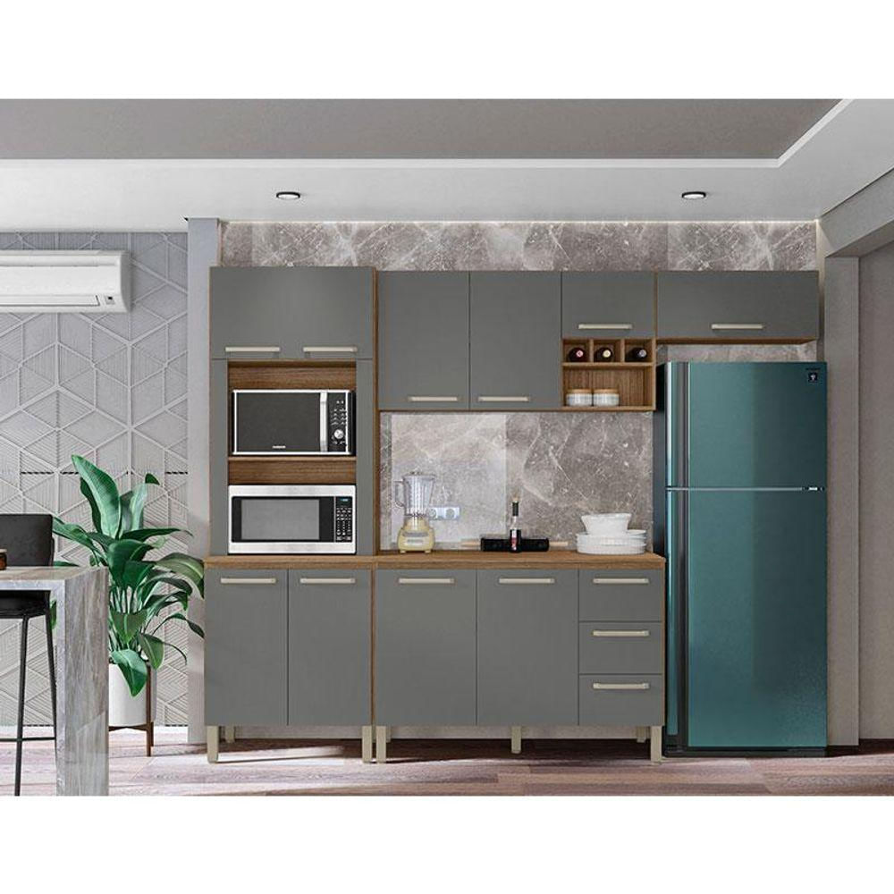 Cozinha Modulada Ambiente Ametista Composição 5 Freijó Gris - Kits Paraná
