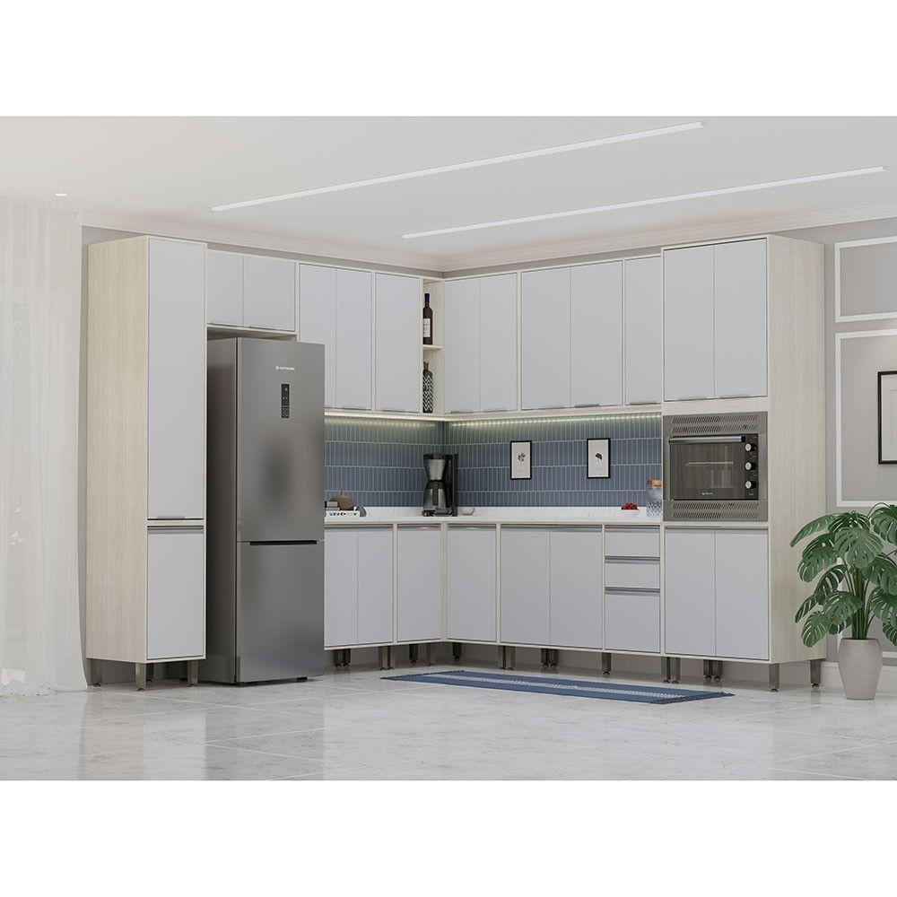 Caracteristicas: Corpo/Caixaria: FF (Finish Foil) Frontal: BP Dobradicas: Metalicas 35 mm Slowmotion (com amortecedor) Puxadores: Aluminio Tipo Gola - Prata Corredicas Metalicas Telescopicas em 3 estagios, garantindo abertura total das gavetas Quantidade de Portas: 21 Prateleiras: 15 Gavetas: 3 Pes: P S - Champagne Garantia de 3 meses direto do fabricante.