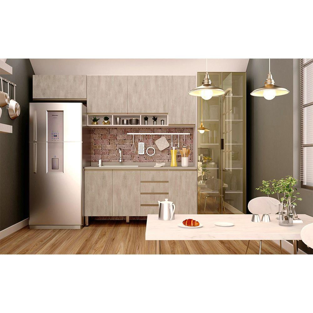 Cozinha Modulada Completa 6 Peças Branco Com Concreto Vidro Reflecta Pérola Luciane Móveis Branco Polar Com Concreto