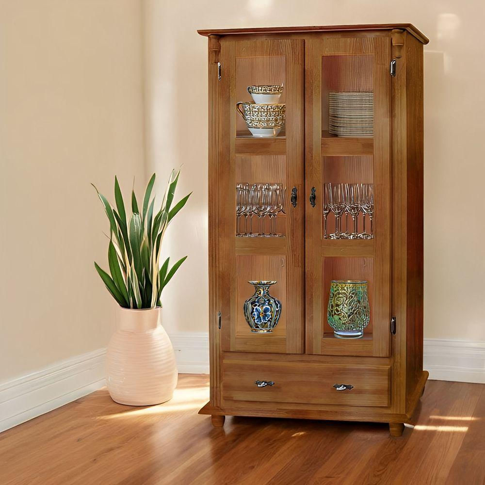 Cristaleira De Madeira 1 Gaveta 2 Prateleiras Pés Torneados - Imbuia Glazer