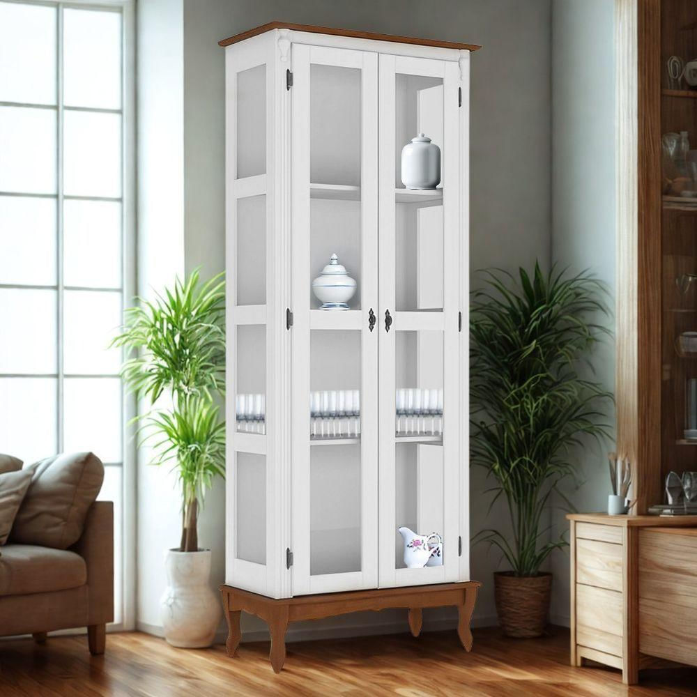 Cristaleira De Madeira 2 Portas Pés Luiz Xv - Branco Laca Com Tampo E Base Imbuia Glazer