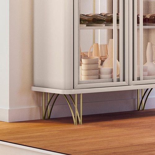 Cristaleira Decorativo com LED Portas de Vidro Texas Off White G26 - Gran belo