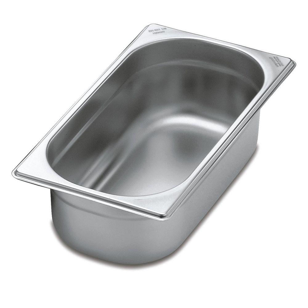 Totalmente feita de aço inox, por isso não solta nenhum resíduo nos alimentos, mantendo-os saudáveis. Altamente durável mantém suas características originais, preservando a beleza, a higiene e a durabilidade do material. Cuba com paredes laterais com rebaixamento interno para facilitar o empilhamento. Cantos internos arredondados e mais amplos para ajudar na limpeza e no recolhimento dos alimentos. A linha de cubas gastronômicas Tramontina está de acordo com todos os módulos dimensionais descritos na norma europeia EN 631. Material: aço inox. Capacidade: 3,90l. Profundidade: 100mm. Aço 430 Sem alças.