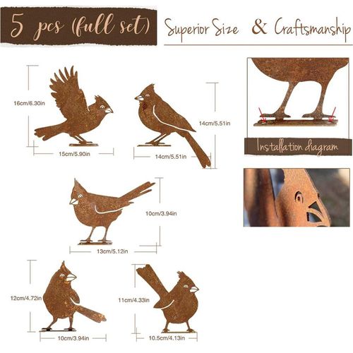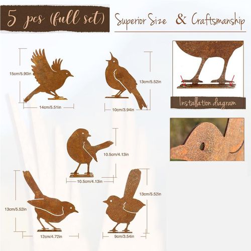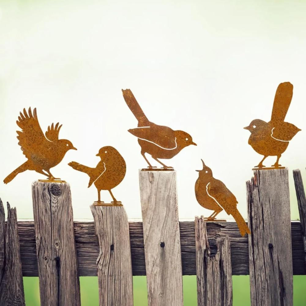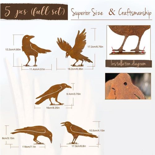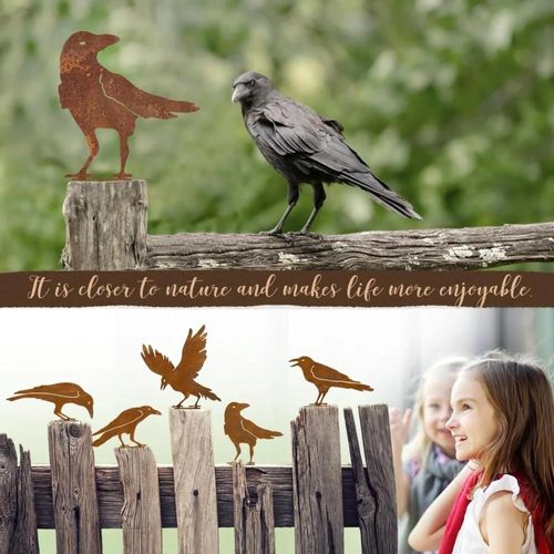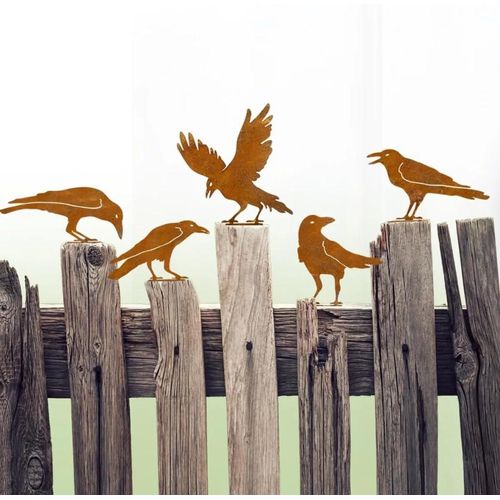 Decorações de Pássaros de Metal para Cerca ao Ar Livre - Silhueta de Corvo marrom