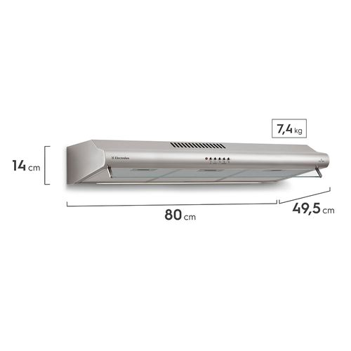 Depurador de Ar Parede Electrolux 80cm Inox com Filtro Lavável e Máscara Captadora de Ar (DE80X)