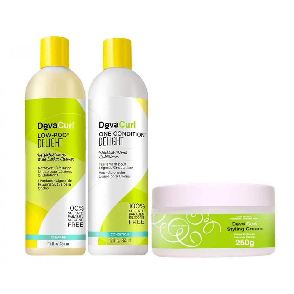 Deva Curl Delight Kit Shampoo Low Poo (355ml) e Condicionador One (355ml) e Styling Cream (250ml)